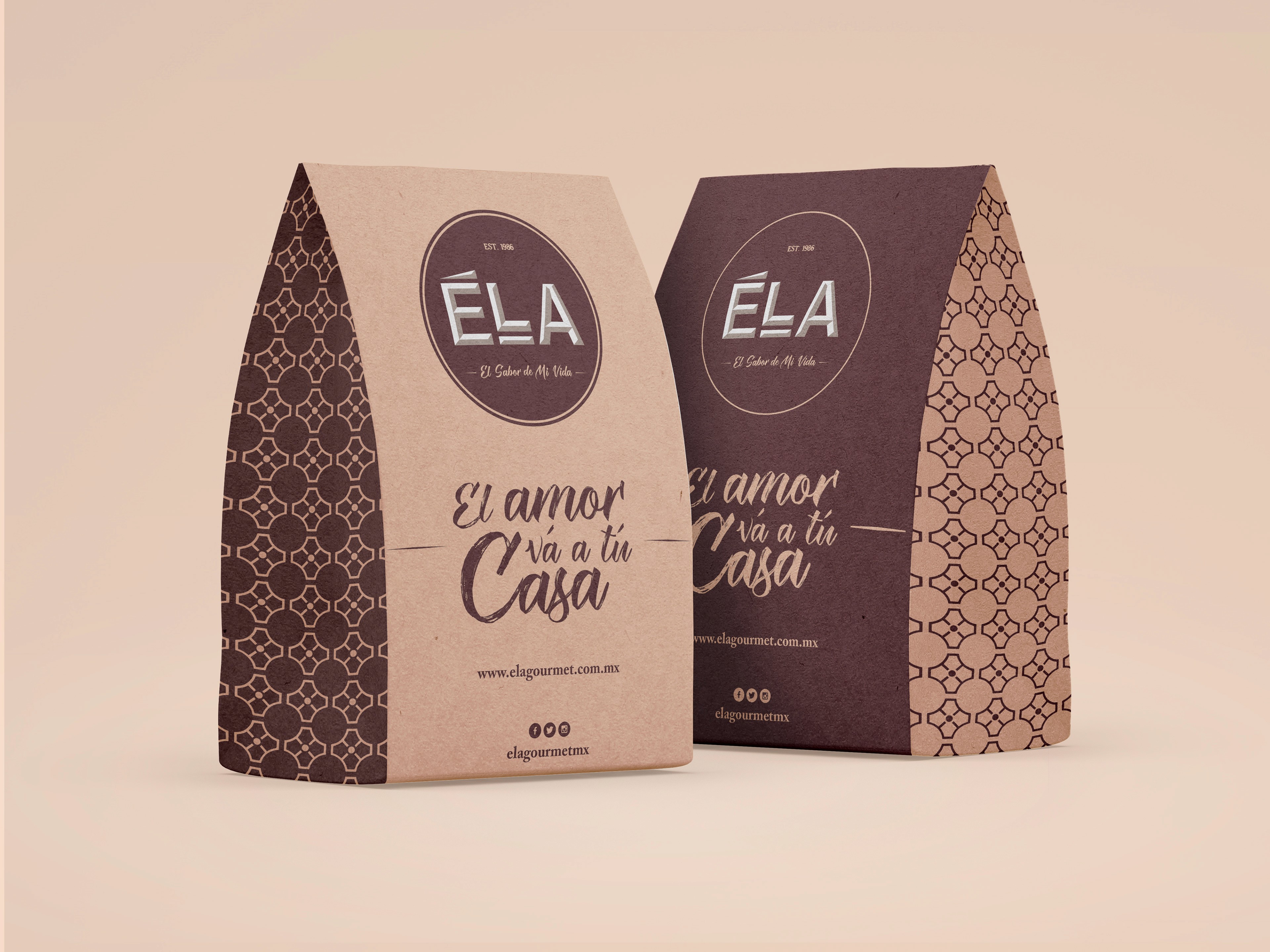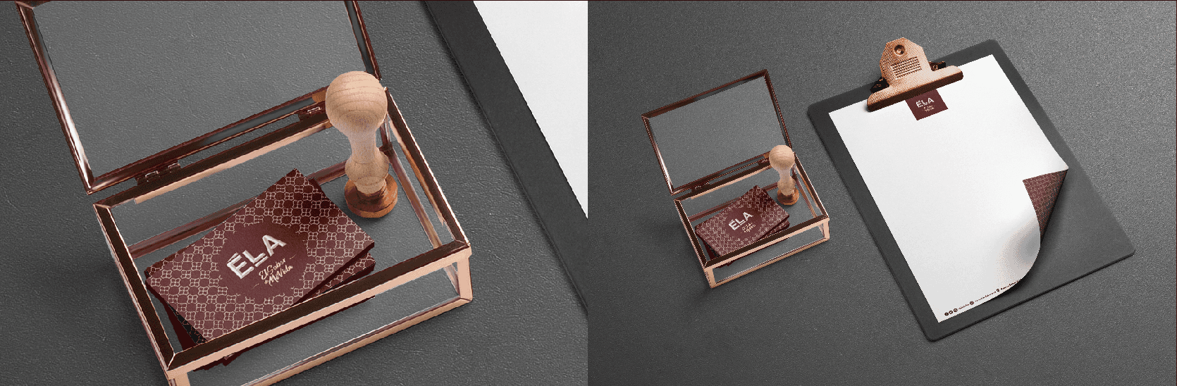 The logo is made up of uppercase letters É, L, and A.The typeface is an exclusive, custom design for our client. The slogan is encompassed in the primary company logo.